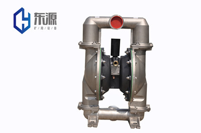 在不銹鋼隔膜泵的兩個對稱工作腔中,各裝有一塊有彈性的隔膜6,聯(lián)桿將兩塊隔膜結成一體,壓縮空氣從泵的進氣接頭1進入配氣閥3后,推動兩個工作腔內的隔膜,驅使聯(lián)桿聯(lián)接的兩塊隔膜同步運動。與此同時,另一工作腔中的氣體則從隔膜的背后排出泵外。一旦到達行程終點。配氣機構則自動地將壓縮空氣引入另一個工作腔,推動隔膜朝相反方向運動,這樣就形成了兩個隔膜的同步往復運動。每個工作腔中設置有兩個單向球閥4,隔膜的往復運動,造成工作腔內容積的改變,迫使兩個單向球閥交替地開啟和關閉,從而將液體連續(xù)地吸入和排出